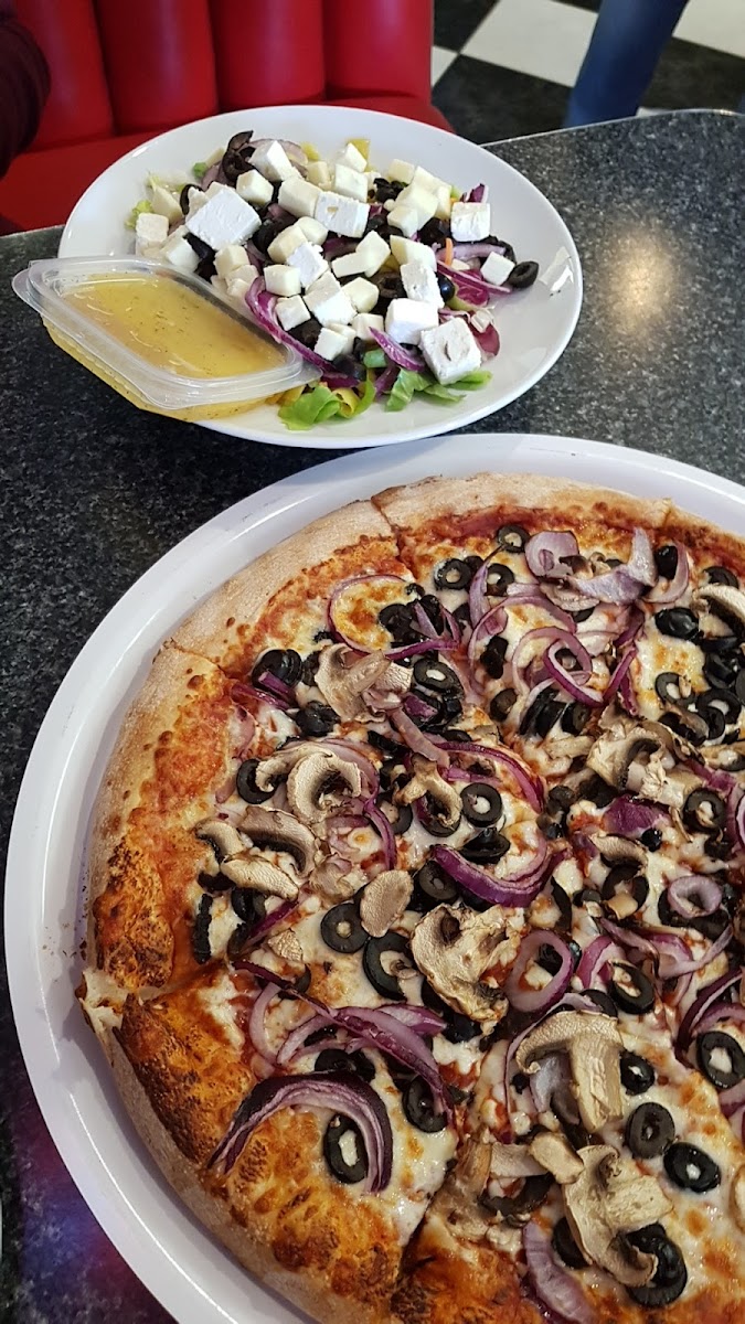 Pizza is at the heart of the experience here, and the signature selections speak for themselves. The Pizza Deluxe is a standout, loaded with flavor and generously topped, giving you that classic American-style bite with every slice. If you enjoy bold yet balanced combinations, the Mushroom Black Olive and Onion Pizza delivers an earthy, savory mix that feels both hearty and comforting. For those who like a little color and crunch, the Peppers pizza adds a bright note to the menu, while the Pletze Pizza offers something slightly different that regulars often mention in their reviews. To round things off, a chilled Canada Dry pairs perfectly with the food, keeping the meal easygoing and refreshing.