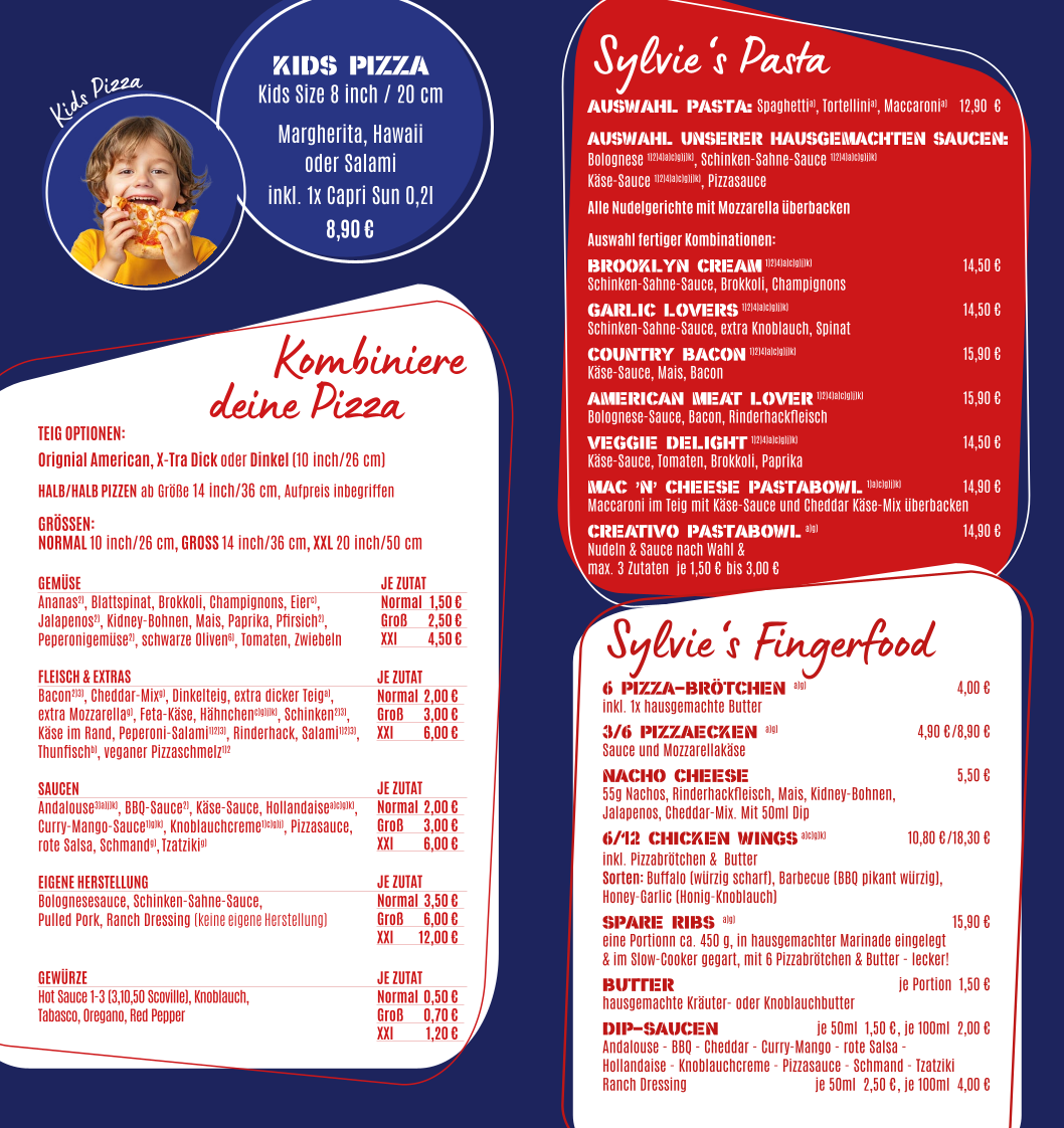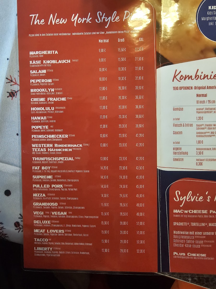 Sylvie's American Pizza offers a diverse and satisfying menu that caters to various tastes, ensuring there’s something for everyone. The centerpiece of their offerings is their New York Style Pizza, featuring a variety of options like the classic Margherita, the flavorful Käse Knoblauch (cheese and garlic), the zesty Salamipeperoni, and the rich Brooklyn pizza. For those with kids, the Kids Pizza offers a smaller, more manageable portion that still packs plenty of flavor.